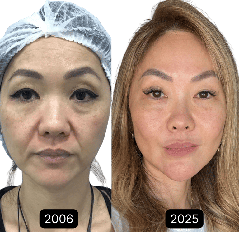 Por isso, desenvolvi dois métodos que se complementam, baseados não apenas na minha experiência profissional, mas também na minha própria vivência aos 55 anos, integrando saúde e estética para resultados naturais e duradouros. Aqui, a estética nunca começa apenas no rosto. Começa de dentro para fora.